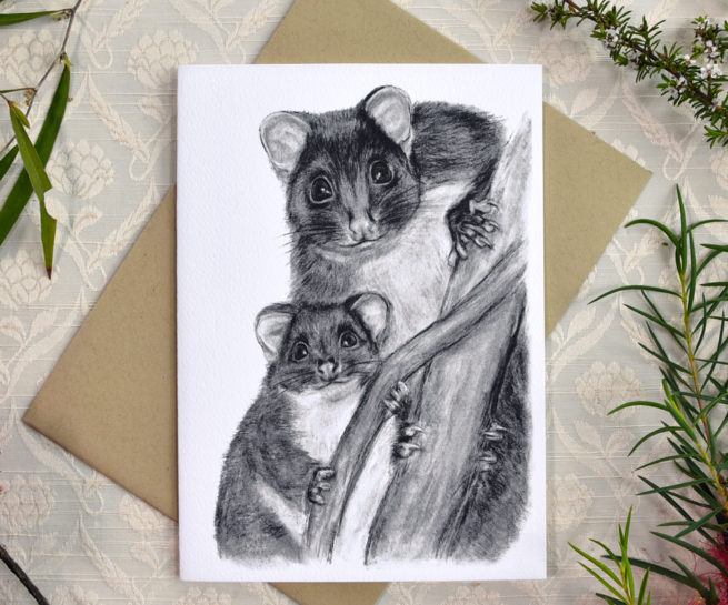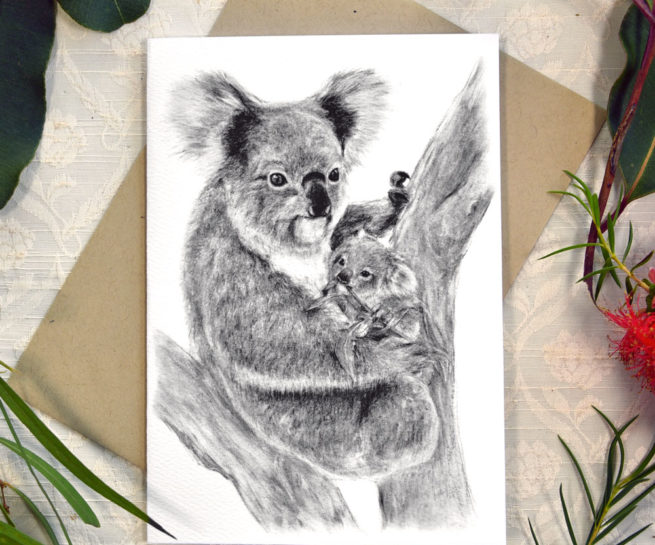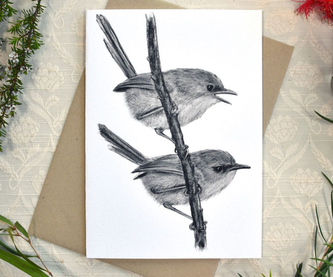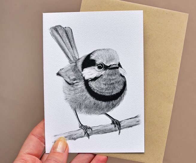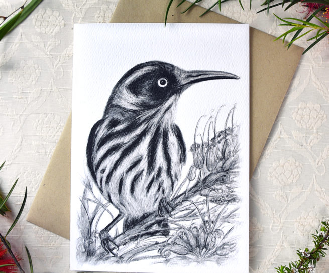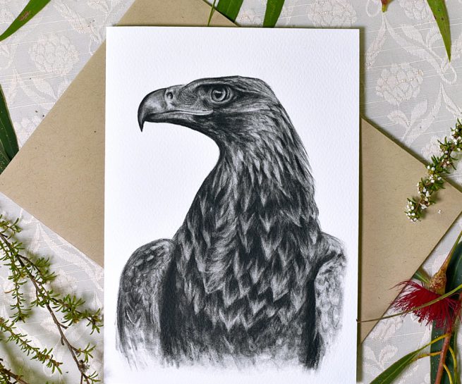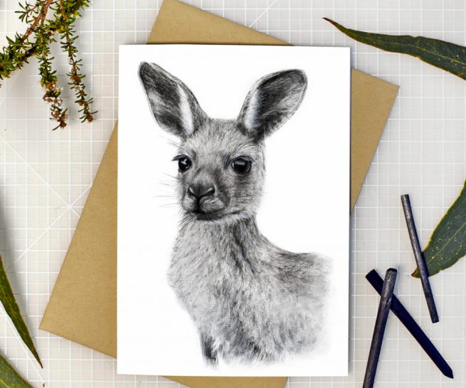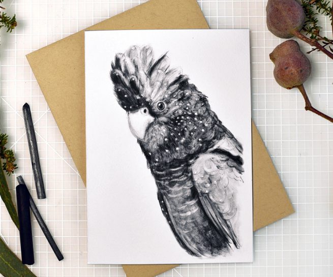 The extending range of greeting cards, magnets and prints featuring charcoal portraits of native animals and birds.