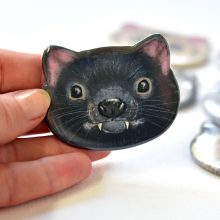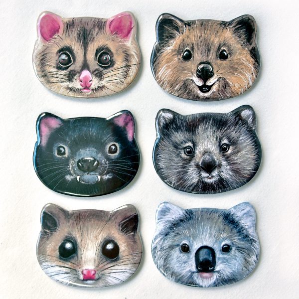 An Australian animal fridge magnet with a Tasmanian devil face. There are six different marsupial magnets in the range that you can find in our shop.
